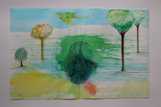 Arbeit auf Papier/Work on paper. Aquarell, Bleistift, Tusche, Chinesische Tusche/Watercolour, pencil, ink, Chinese ink, 24×34 cm