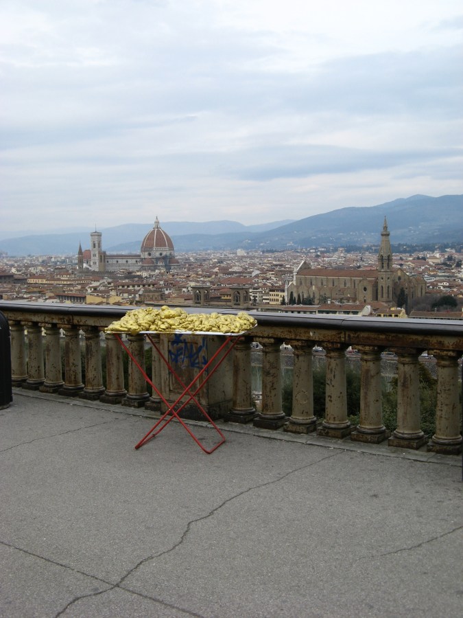 © Renate Egger and Wilhelm Roseneder. Goldene Erweiterung/Golden expansion. Street art project. Artour-o il must. Florence, Italy 2011