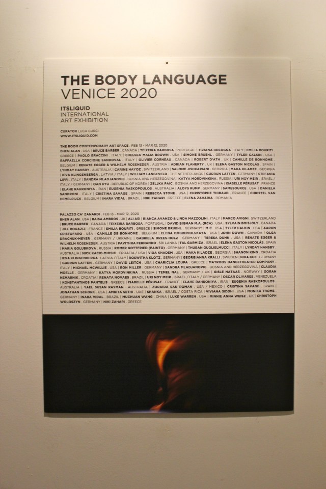 ITSLIQUID Group is proud to announce the exhibition THE BODY LANGUAGE 2020, curated by Arch. Luca Curci (founder and director of THE ROOM Contemporary Art Space, ITSLIQUID Group and Luca Curci Architects) that will be held from February 13 to March 12, 2020 at THE ROOM Contemporary Art Space and at Palazzo Ca’ Zanardi, in Venice.