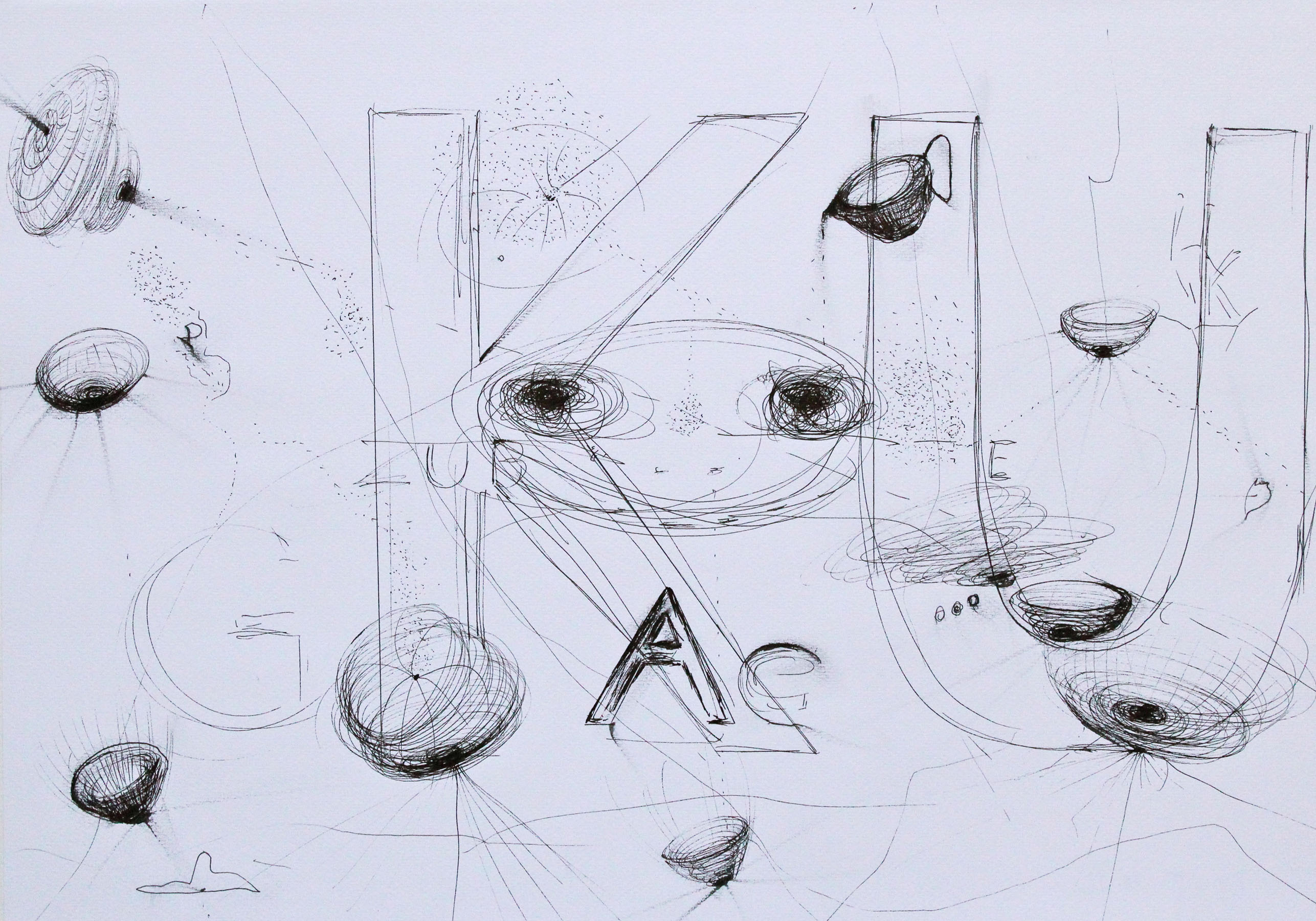 Bleistift, Allstift, Kugelschreiber, Filzstift/Pencil, all pen, ball pen, felt pen, 42×30 cm