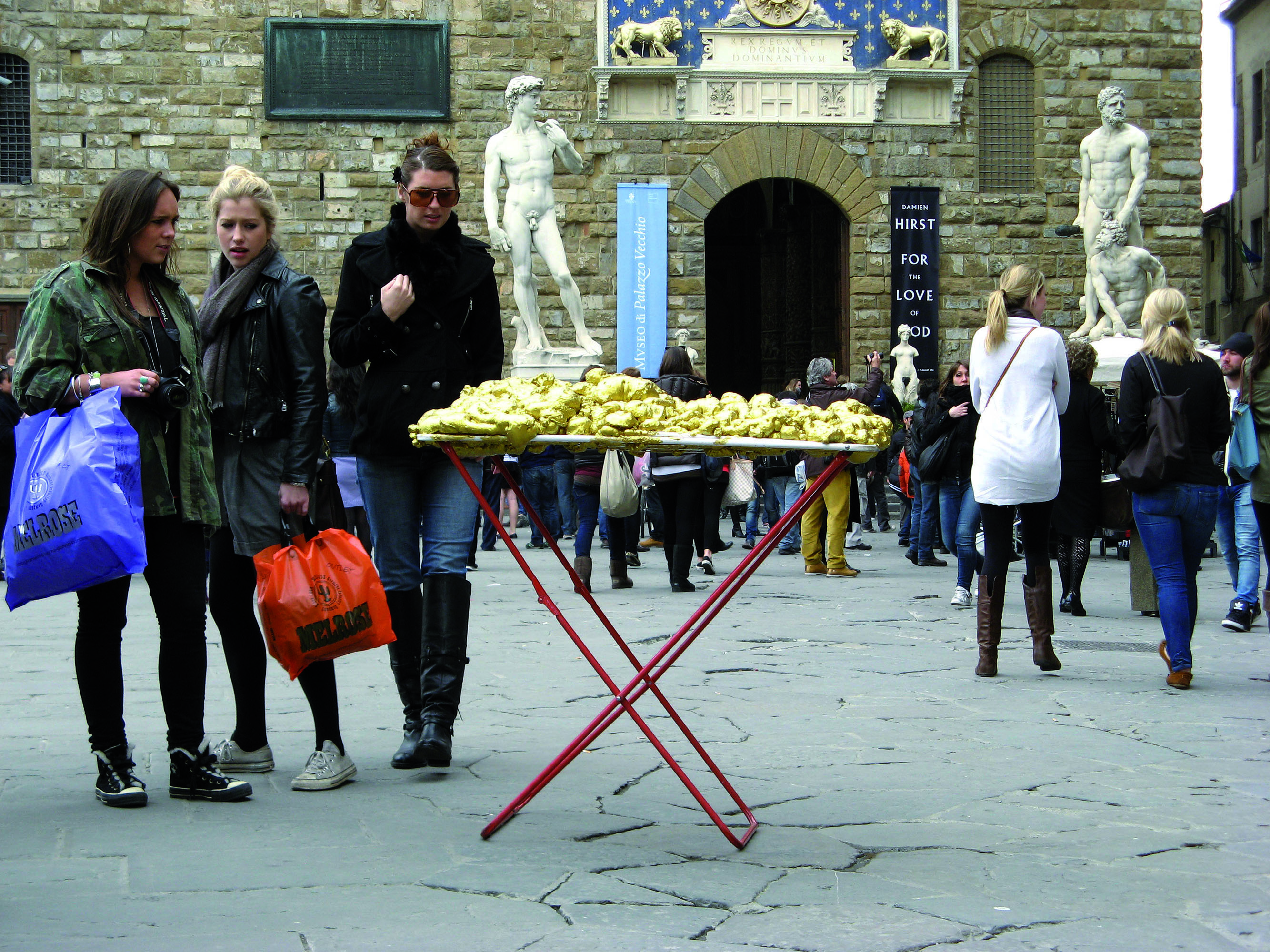 © Renate Egger and Wilhelm Roseneder. Goldene Erweiterung/Golden expansion. Street art project. Florence, Italy 2011