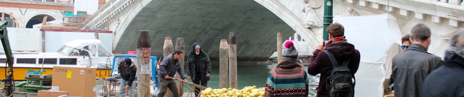 © Renate Egger and Wilhelm Roseneder. Goldene Erweiterung/Golden expansion. Street art project. Venice, Italy, December 2016. Contemporary Venice. It´s Liquid. International Art Show. Palazzo Flangini, Venice, Italy 2016/2017