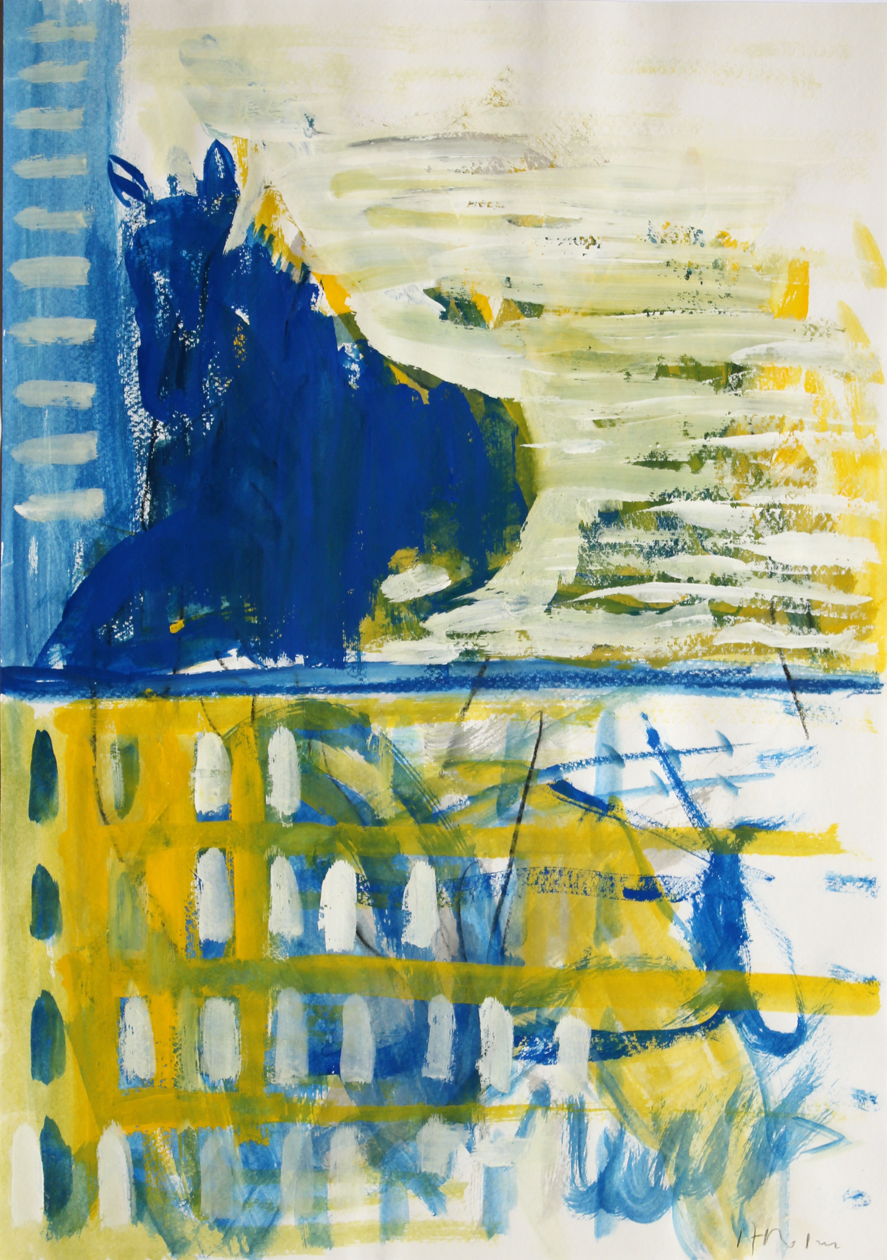 © Wilhelm Roseneder. Blaues Pferd/Blue horse, 1987. Gouache, Ölpastell auf Papier/Gouache, oil pastel on paper, 42×29,5 cm