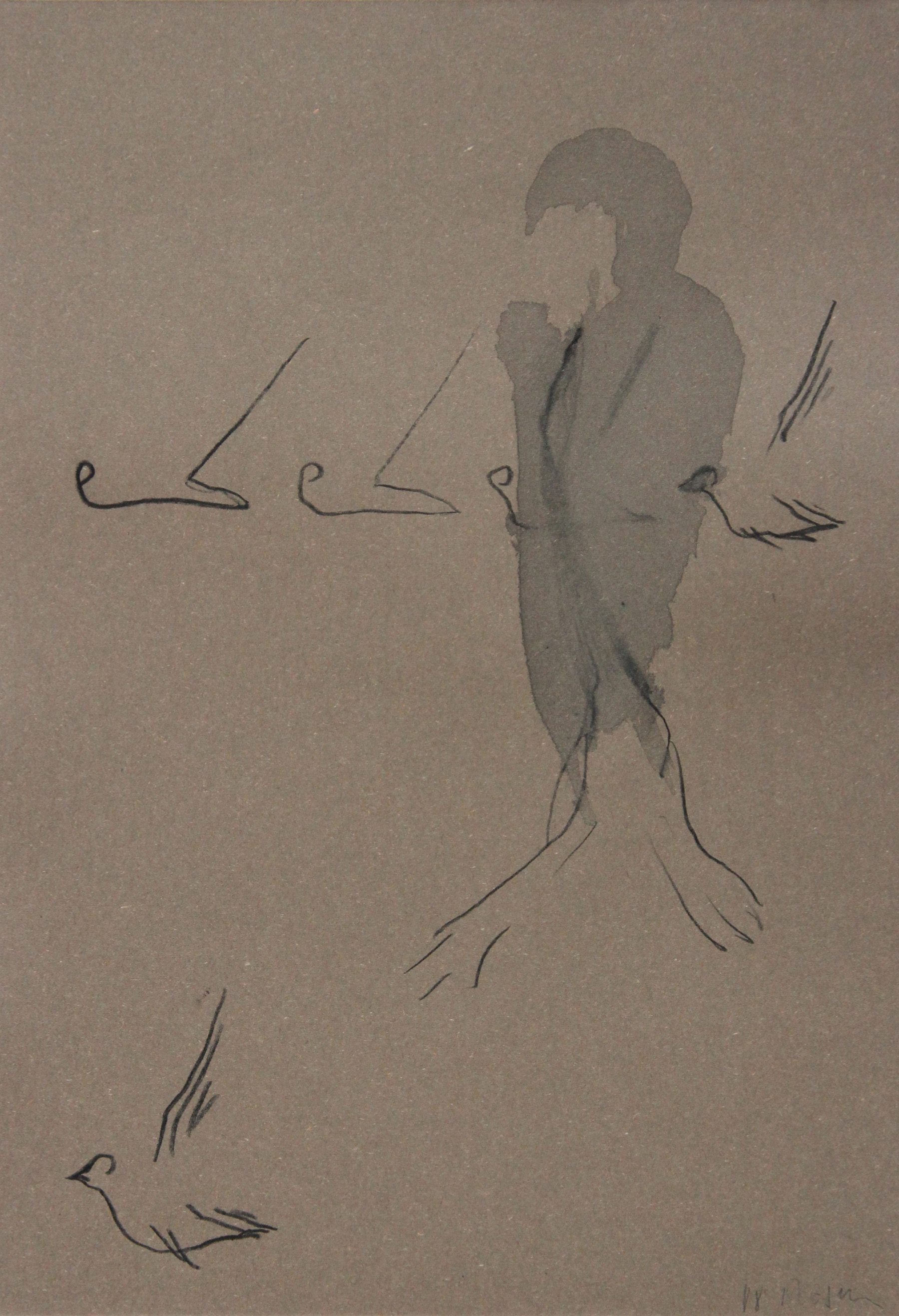 © Wilhelm Roseneder. Dem Engel einen Schlag versetzen, 1988. Tusche, Ölkreide auf Papier/Ink, oil crayon on paper, 14,6×20,9cm