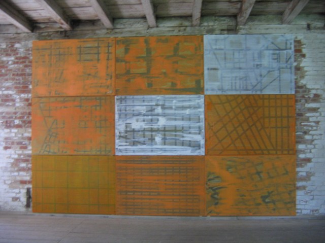 Wilhelm Roseneder. Guides, 1998-2003. Portland, Barcelona, London, Madrid, Washington, Beverly Hills, Soho (NY), Greenwich (NY), San Francisco. Öl auf Aluminiu/Oil on aluminium, jede Malerei/each painting (von links oben/to be read from top left) 104×150 cm